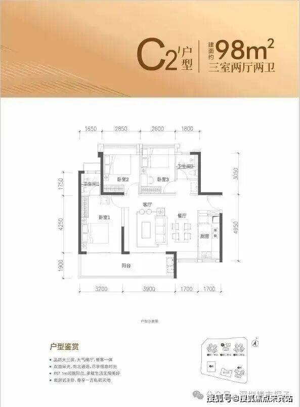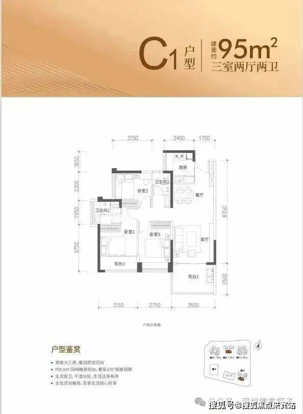 2、户型,赠送率93%;可以说“年纪轻轻,三房两厅”等等;