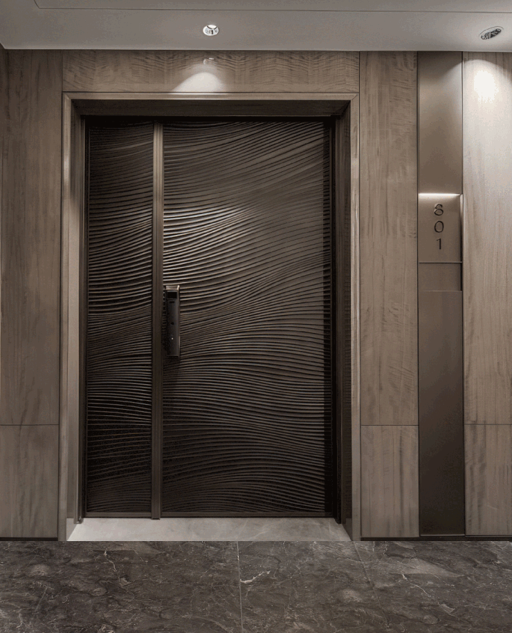 东鹏抛釉砖应用于电梯厅地面,以黑色主调搭配石材纹理,复刻天然臻石气质,为空间注入高奢韵味。砖面防污易洁,耐磨耐用,在日常使用中从容应对抵御磨损污渍,保持如新。清晰而富有层次的纹理赋予电梯厅沉稳而不失艺术感的视觉魅力,于细微处彰显品味,实现功能与美学统一。
