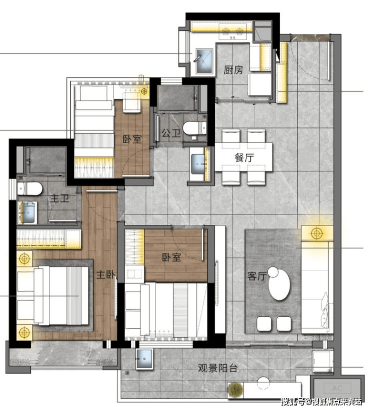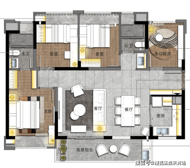 明星户型:建面约110㎡ (3+1房2厅2卫),超6米阔景阳台,朝南大横厅设计