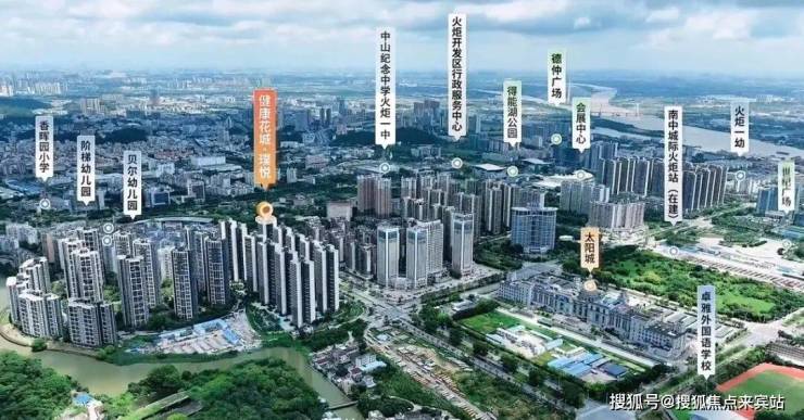 同属于火炬中心板块的健康花城璞悦,除了南中城际火炬站(在建)、太阳城广场、得能湖公园、华佗山公园等外在配套。