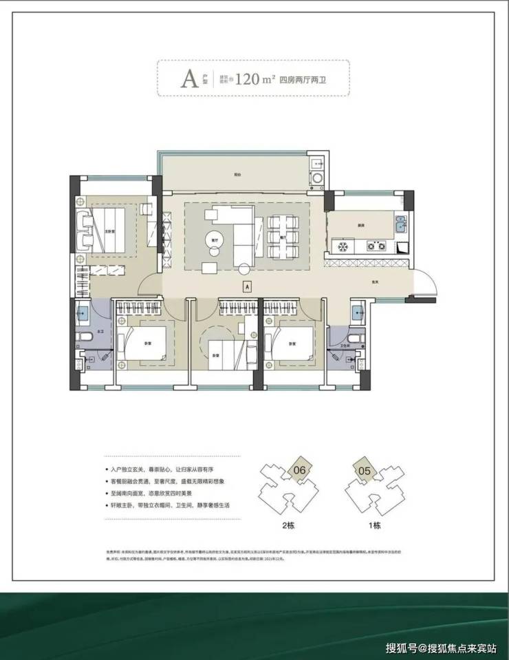 120平四房两卫 折后总价 900-1050万(东南&西南) 30套