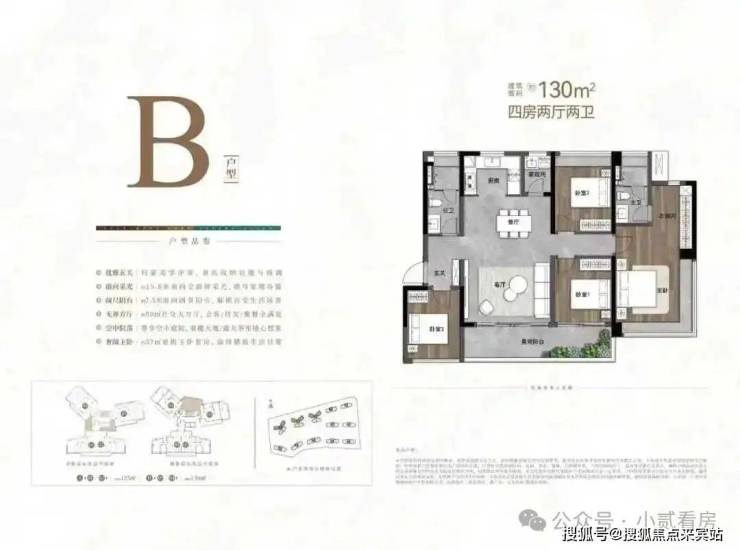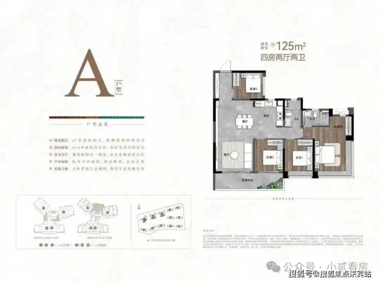 约125平4房2厅2卫,奢享全明电梯厅,让业主每次归家都能被生动的景观、采光包裹,抚平业主归家情绪;
