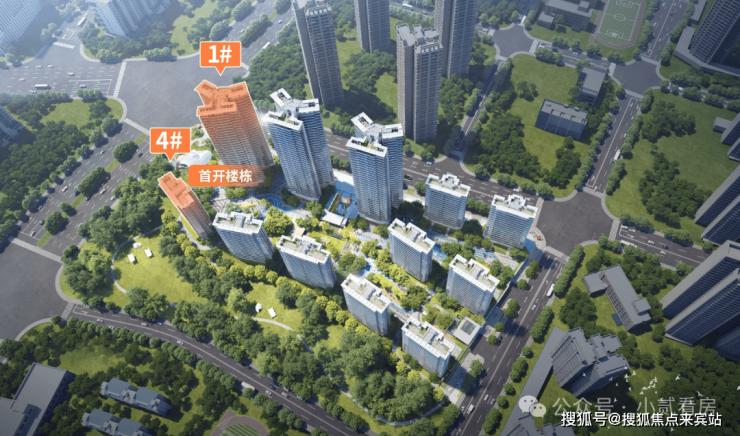 项目规划了12栋楼,其中有3栋31-32层的高层住宅,2T4,约368套货量;9栋16层高的小高层,2T2,约288套货量。