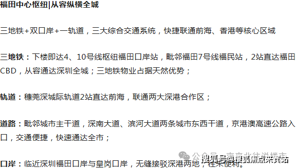 地铁:地铁4号线的交汇站福田口岸站(距离约380米)地铁7号线福民站