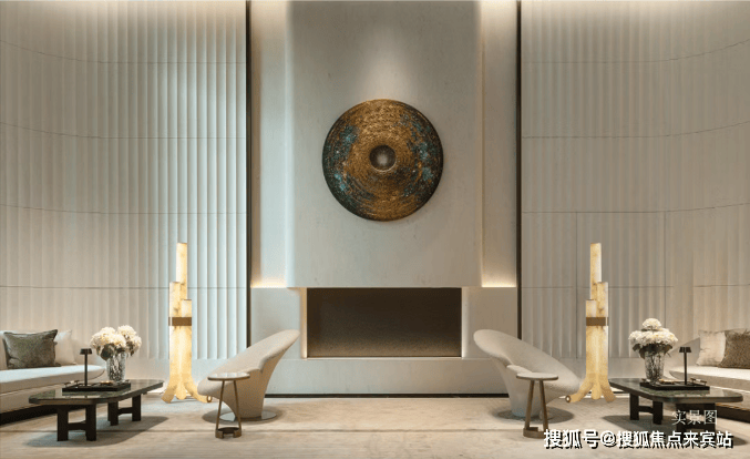 皇家白玉的仪式感:归家环岛前庭中央,整石切割的皇家白玉发光圆盘,形似平安扣,寓意“财运亨通”;7米高黄铜大门左右矗立四幅皇家白玉玉璧,晨光漫溢时,温润玉泽如神鹿衔星坠入凡尘。