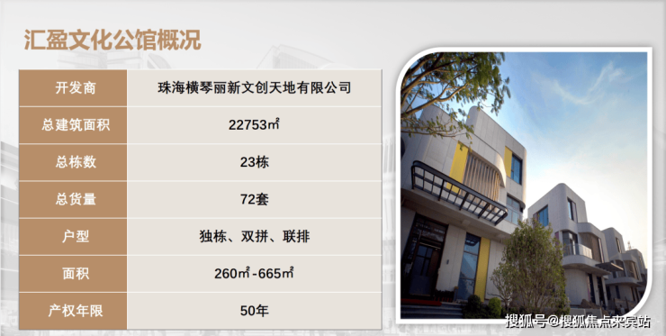 汇盈文化公館總建面約2.2萬㎡,共23棟合72套,地上面積約260㎡-665㎡,為島上稀缺的文創產品,形式包含獨棟、雙拼、聯排。