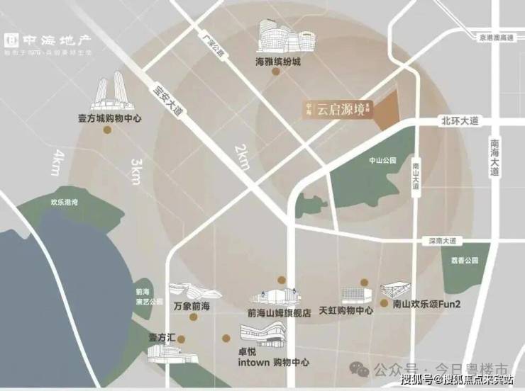 【中海云启源境】处在南山与宝安交界处的南头片区中山公园北,即北环大道以北,南海大道以西,平南铁路以南,项目与周边环境相对独立,与豪方天际相邻。