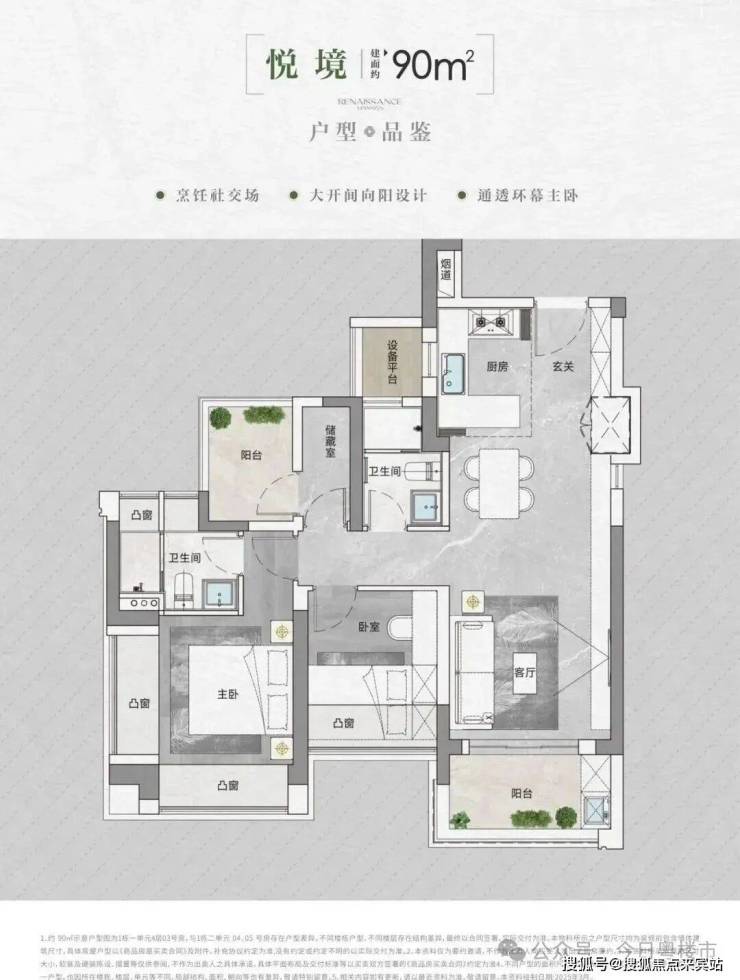 得房率:通过创新性的飘窗、双阳台改造、设备平台赠送等设计,实现平均94-96%的惊人得房率。