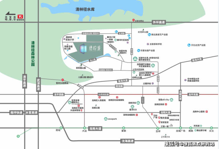 项目距外环高速五联出入口车行距离约1.2KM,快速畅达龙华、宝安、光明等中西部核心区。自配建面约2.4万平方米漫步式街区,商业休闲配套尽汇;更邻约28平方公里清林径森林公园,三水库十二大公园天然绿肺簇拥环伺,森氧诗意生活;万科千林山居健康服务中心、龙岗区人民医院、龙岗妇幼保健院等医疗配套齐全,为家人365天健康护航。