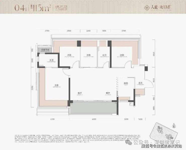 04户型 115㎡四房:727-892万(大横厅南北通)