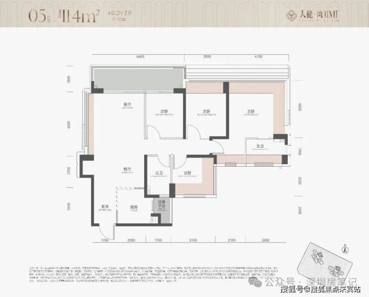 114㎡四房两卫设计独特,客厅270°采光观景,远眺山景,视野非常好。这个户型很安静,适合对采光和视野有要求的家庭。