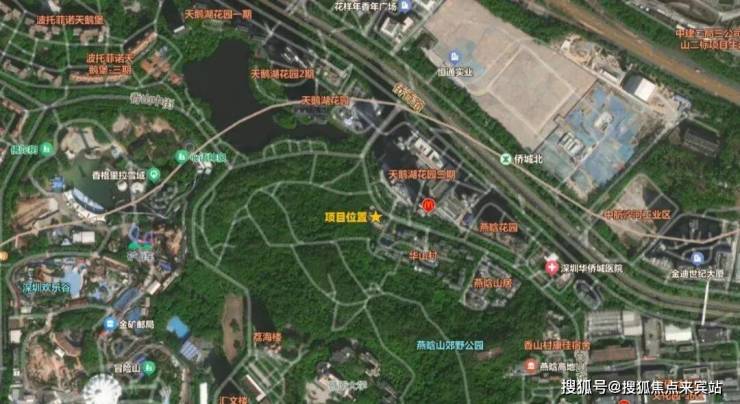 华侨城璟云台落址南山区沙河街道核心,地处香山东街17号,宗地号T309-0172,紧邻华侨城天鹅湖三期,属深圳公认的豪宅片区。周边燕晗山郊野公园环绕,西北侧均为绿地,延续华侨城低密度、生态优的核心优势,临近地铁2号线华侨城北站,依托城市主干道,通达深圳湾超总、科技园等核心区域,居住静谧且通勤便捷。