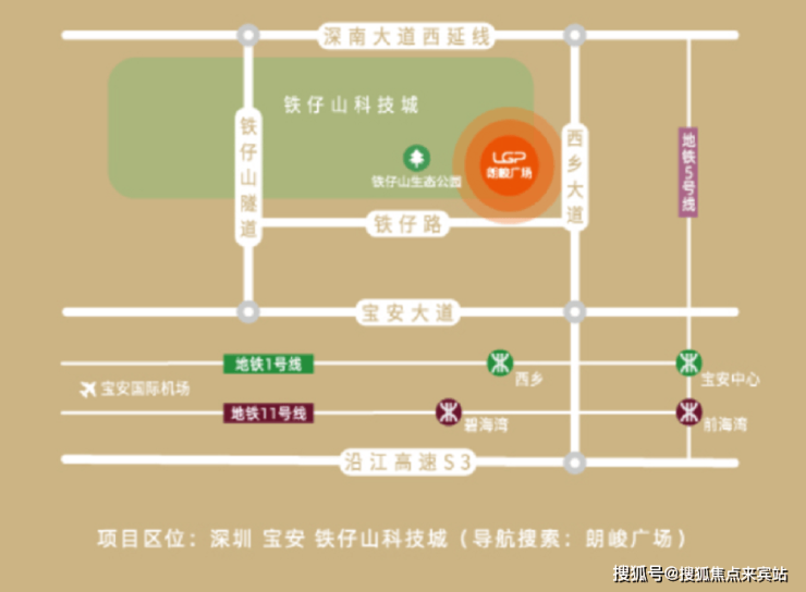 项目与三大地铁相邻,临近1 号线西乡站、11 号线碧海湾站、12 号线宝安客运中心站。同时,宝安大道、G107 国道、G4 京港澳高速、广深沿江高速、西乡大道、铁仔山隧道环绕。项目距福永码头、大铲湾码头约6 公里,距深圳国际机场约11 公里。