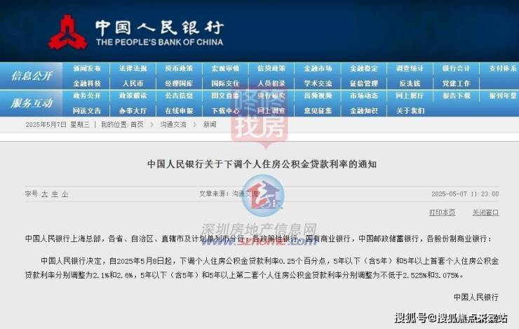 调整后,深圳最新的房贷利率为:决定自2025年5月8日起,下调个人住房公积金贷款利率0.25个百分点,5年以下(含5年)和5年以上首套个人住房公积金贷款利率分别调整为2.1%和2.6%,5年以下(含5年)和5…