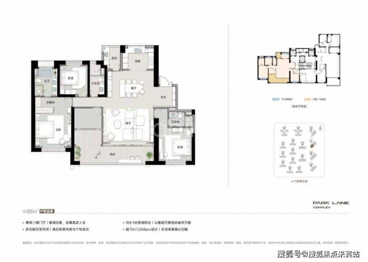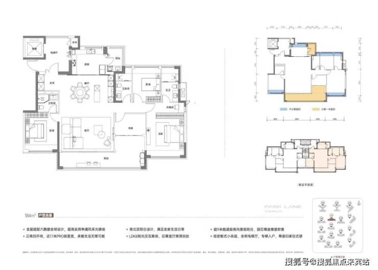 建面约 184-206㎡ 四房两厅三卫:双主卧套房设计,专梯专户,20 米南向巨幕面宽,270° 环幕视野,LDKB 一体化大方厅设计,高楼层可直望顺峰山景,适配一步到位的改善家庭。