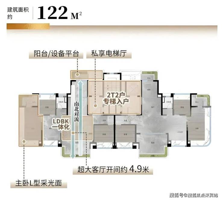 对于有二孩或三代同住需求的家庭,建面约 122㎡的四房值得留意。客餐厅与阳台连成约 35㎡的开阔空间,孩子在客厅玩玩具、长辈在阳台侍弄花草互不干扰,6.2 米宽的阳台一半用来晾晒衣物,一半摆上藤椅茶几,傍晚吹着风聊天很惬意。