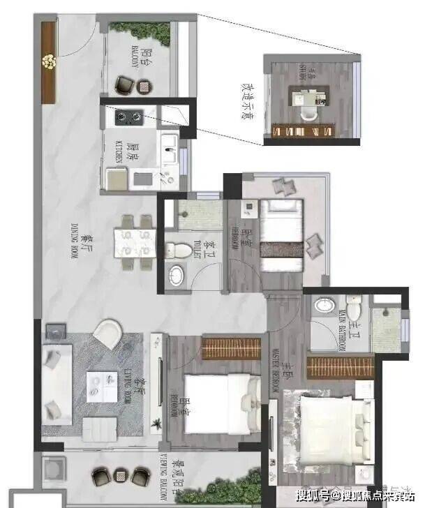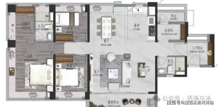 景观大阳台连通次卧--双套房设计,三代同堂更从容