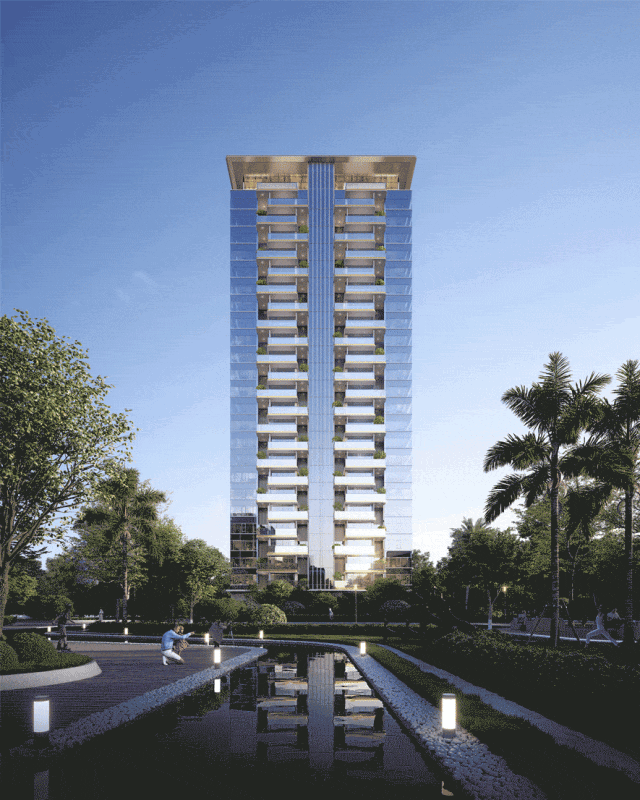 一层临波:都会门庭,江风入境——百米海派轻奢归家门庭,融仪式感与松弛感于一体;