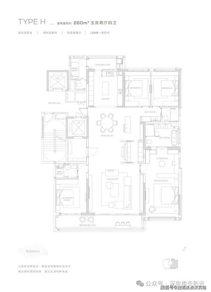 【260㎡户型】南北双阳台-南向双套间-私家电梯厅-LDKB一体化