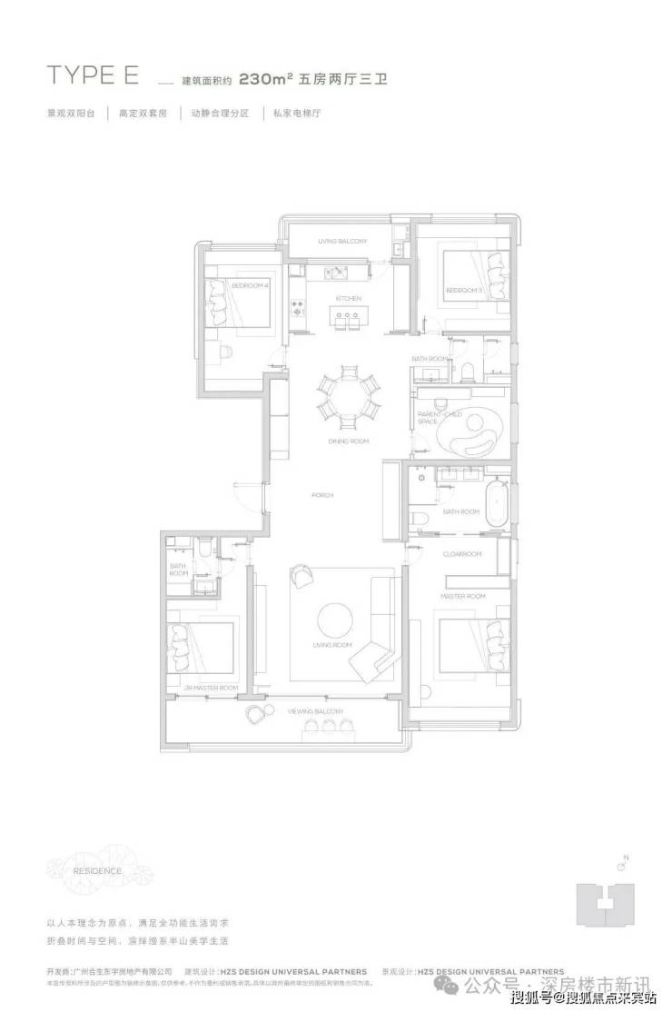 【230㎡户型】观景双阳台-高定双套间-私家电梯厅-双洄游动线