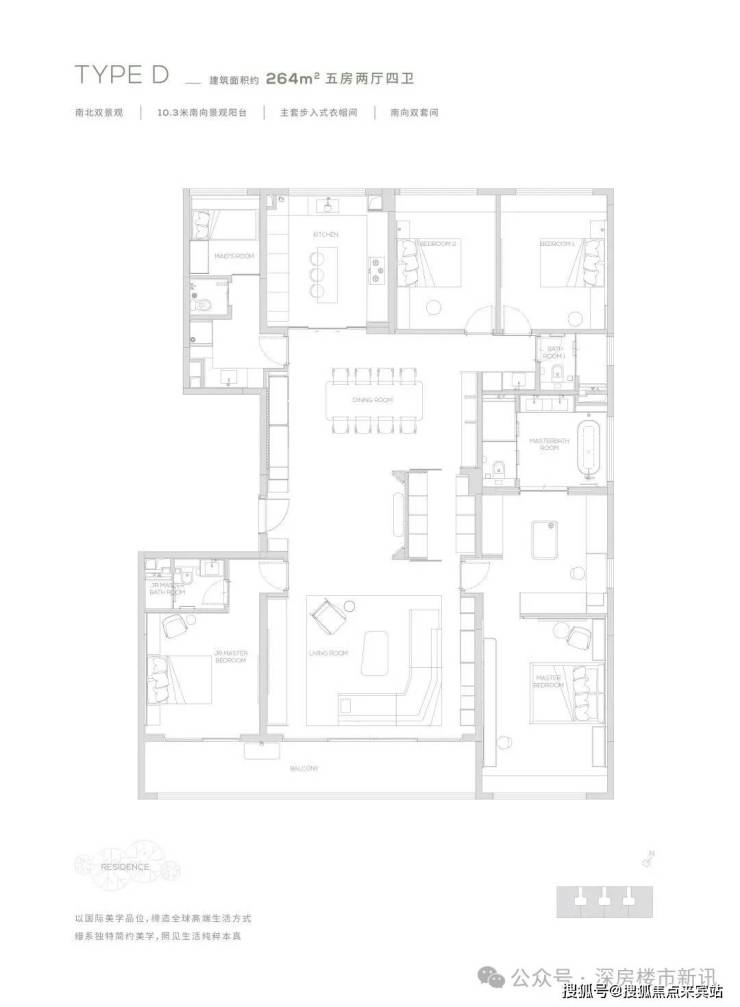 【264㎡户型】10.3米南向景观阳台-南北双景观-主套步入式衣帽间-独创灵动岛设计,生活场景多重切换