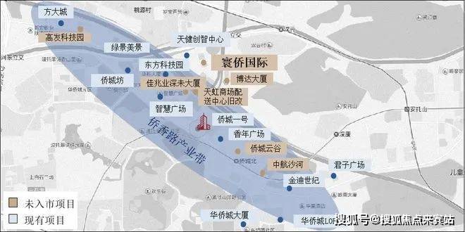 【侨香路总部商务产业带】在建与规划商务项目体量超200万㎡,吸引天健、佳兆业、绿景等知名品牌开发商汇聚;