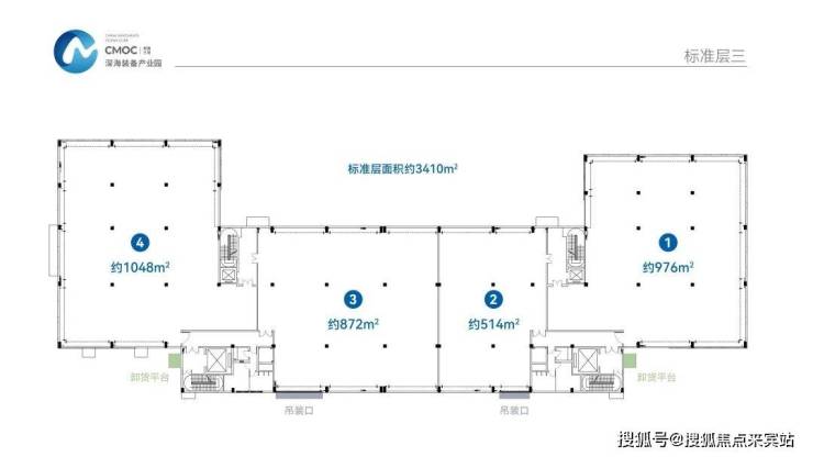 ·荷载:标准层750kg/㎡-1000kg/㎡,设有卸货平台和设备吊装口,满足设备与货物进出需求