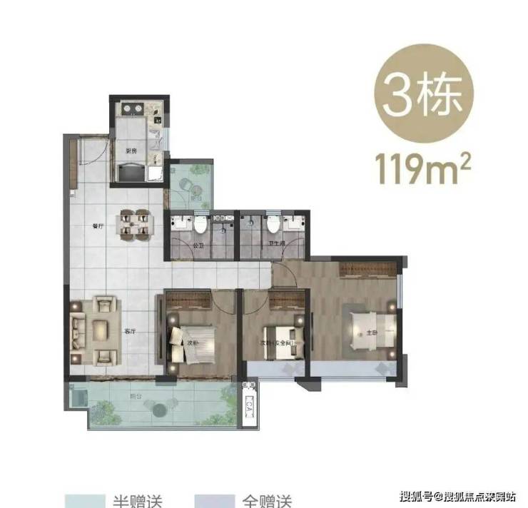 约102-119三房、130-143㎡四房,半山之上户户朝南,全明通透。超阔楼间距,无遮挡视野,至美风光推窗即享。餐客通厅,南北双阳台设计,套房式主卧,U型厨房,卫浴三段式干湿分离等匠心设计,为居者提供美好生活主场