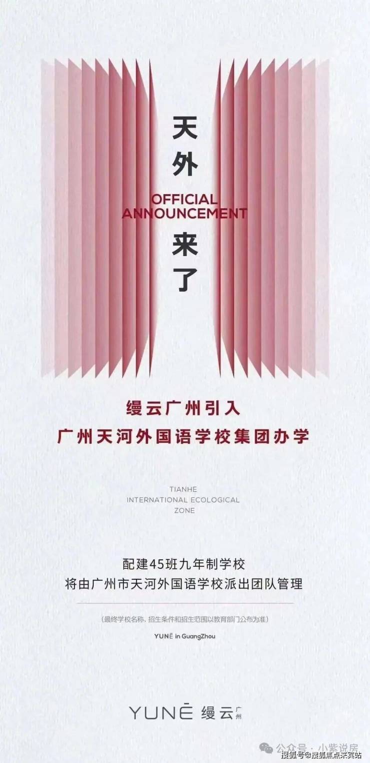 高端人居市场罕见的社区内自带全线12年公立教育配套---幼儿园、18班小学、27班初中,规模不算大,家门口就是学校,足够方便,已经确定引进了天河外国语学校办学,瞬间吊打了天河东的一众项目,并确定2025年9月开学。