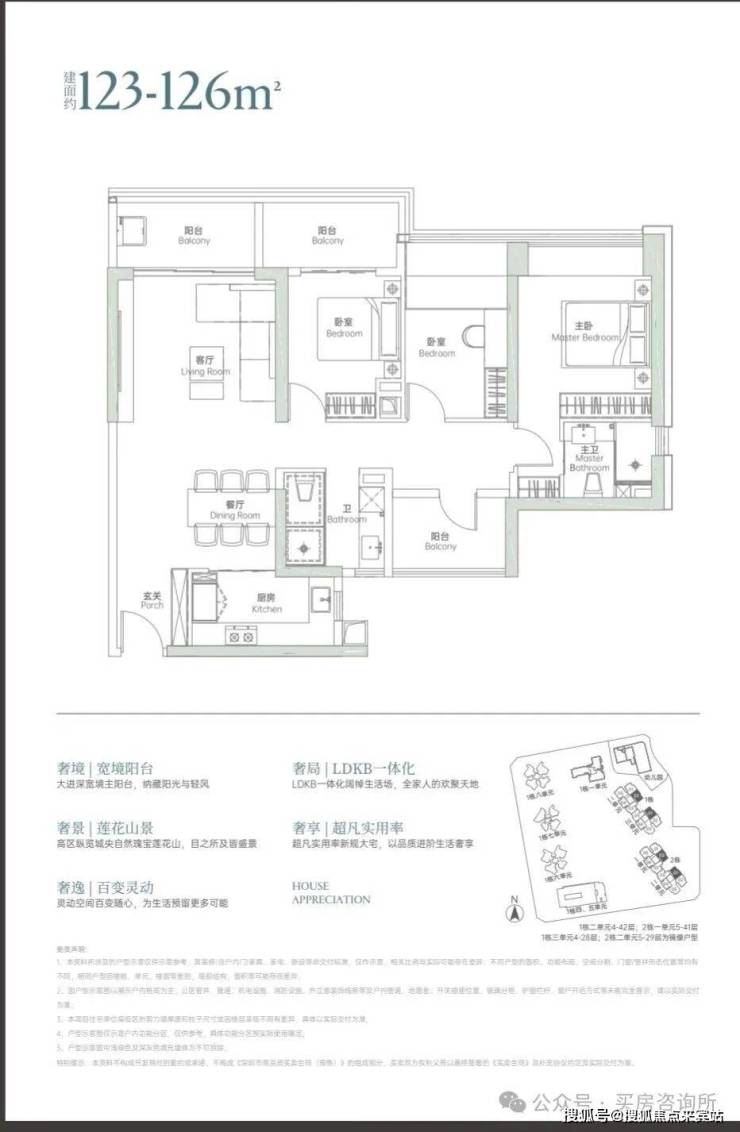 项目首推2-2栋约156套3-6房户型,楼栋分高低区不同设计,低区3梯5户,高区3梯3户。户型采用新规设计,124㎡就能做到四房三卫双套间。