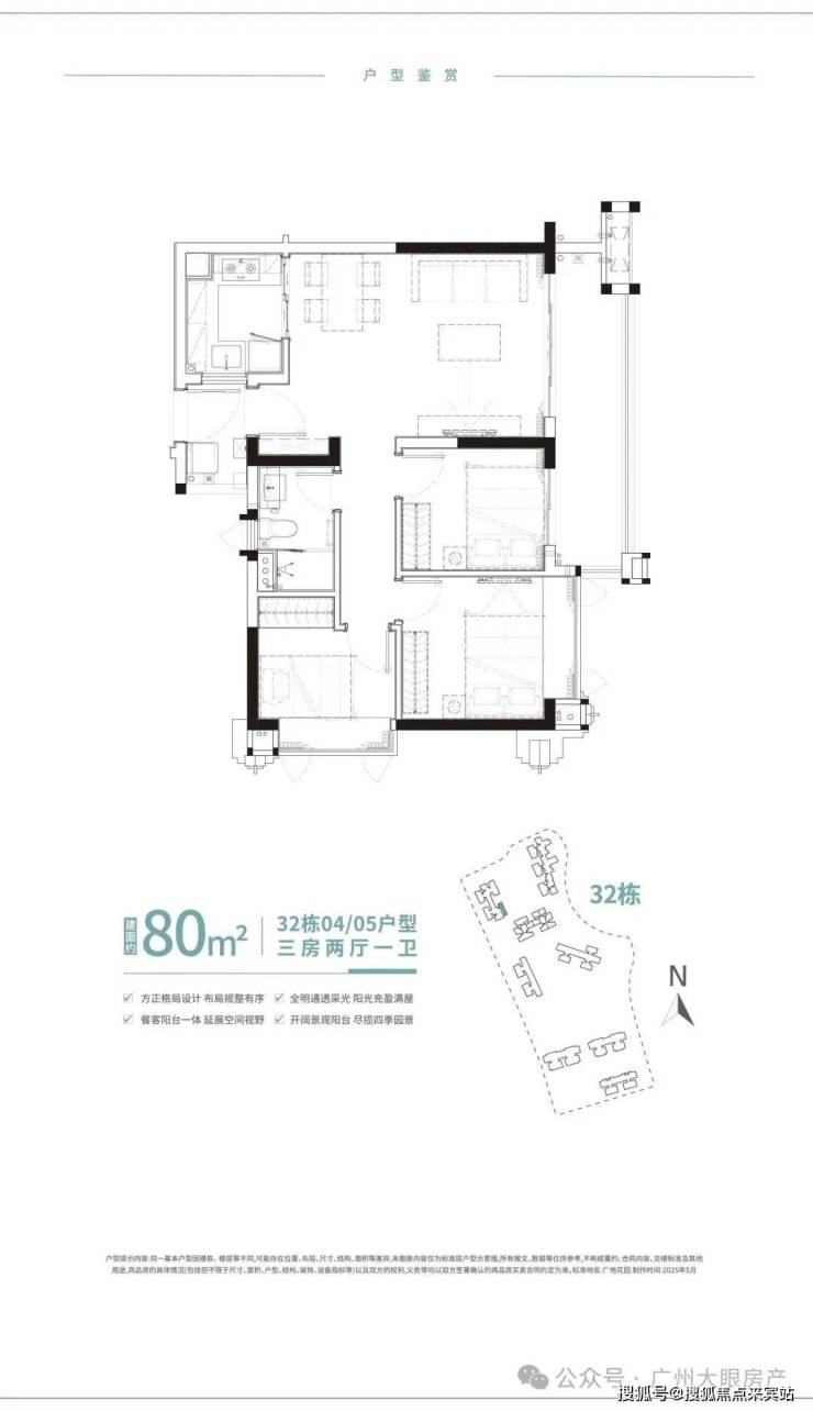 此次广地花园·观灏加推的新品32栋悦景楼座,面积段分别为86m²、96m²、100m²悦景三房,多面采景,三面望水,通透采光,充分利用户型的每一寸肌理,以有限的生活空间焕发更多生活灵感,打造全方位人性化居所。