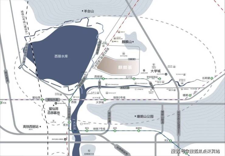 •占地约62.5公顷,配套动车规模约10线检查库、40条存车线;未来现有的深圳地铁5号线和深圳地铁7号线,将与深圳 地铁13号线、深圳地铁15号线、深圳地铁29号线汇集在 这个区域,深惠城轨、深珠城轨、平南铁路,也将从西丽站出发、到达或者经过。