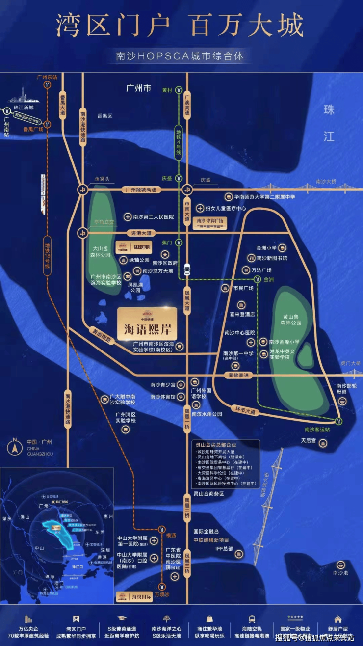【区位】项目位于南沙中芯 凤凰大道 城市中轴之上,出门就是南沙新中轴“凤凰大道”,凤凰大道连接蕉门河区板块与明珠湾板块,沿线落地南沙主要的成熟市政配套,智能公交畅联地铁蕉门站与横沥站。
