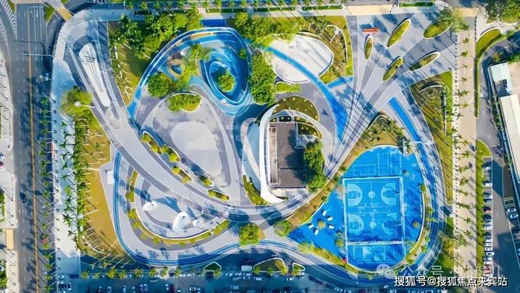 现代立体园林:多层次绿化、慢跑道、全龄活动区(儿童乐园、健身区)。