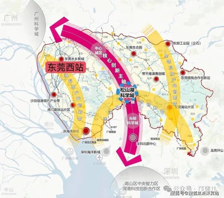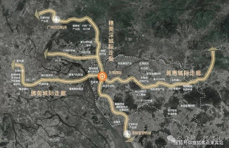 作为东莞最大的轨道交通枢纽站—东莞西站,东西联通湾区先进制造业,南北链入广深科技创新。聚焦科创与制造业要素,承担商务人才交汇服务。与此同时,从东莞西站出发40分钟直通广州、深圳两地机场,影响力足以辐射全球。