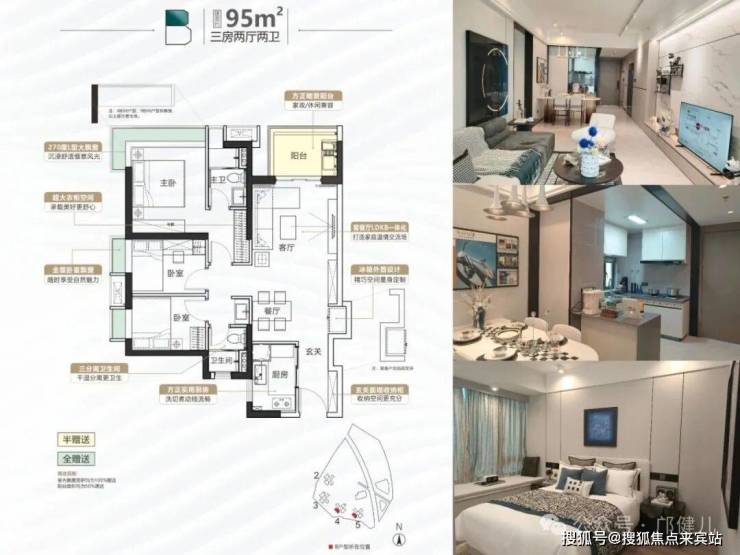 建面约84㎡三房两厅两卫 ;建面约95㎡三房两厅两卫 ;