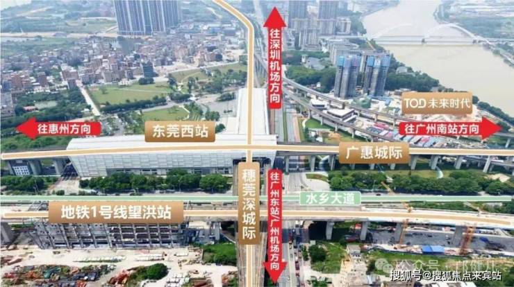 TOD未来时代位于南城国际商务区(即南城CBD)的核心区域,紧邻轨道交通2号线的西平站(已运营)和莞惠城际铁路的西平西站,属于典型的以公共交通为导向的开发项目。