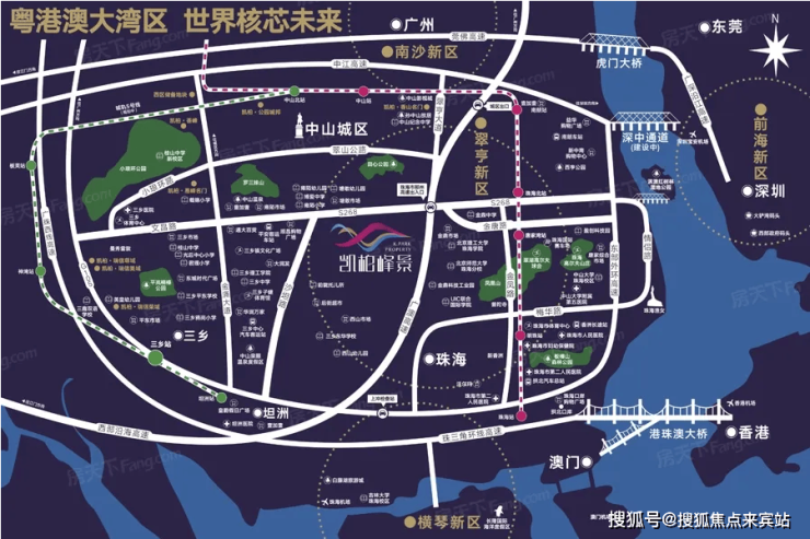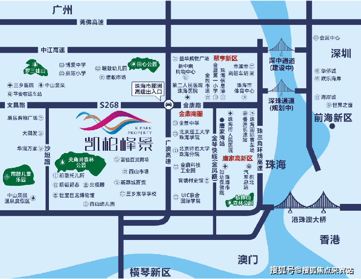 交通便利:位于中山南部珠海北部,多维立体交通路网:深中通道(建设中)、深珠通道(规划中)、港珠澳大桥(已通车)、广珠西线、京珠高速、珠海轻轨北站。实现与大湾区城市的互联互通,打造“广深中珠1小时生活圈,与港澳30分钟内互达”的时空距离;