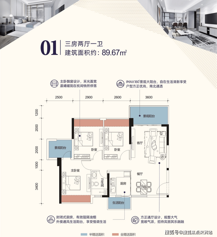 在售户型:86㎡、89㎡、99㎡全南北通透三房户型