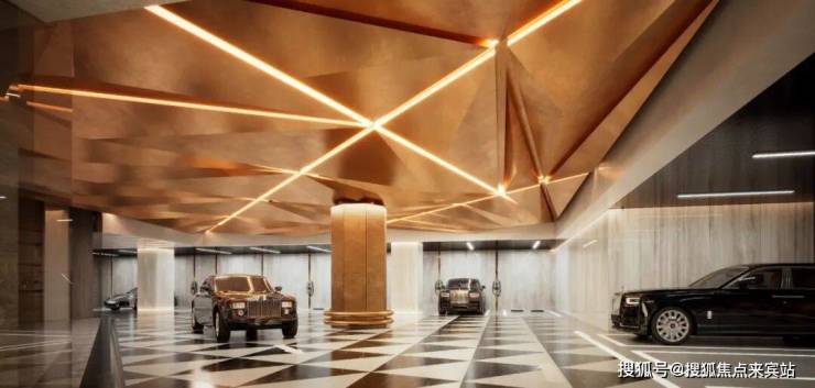 项目设计了地库“中央车站”落客区,区内的星钻穹顶以“日落之钻”为原型设计,材质选用高品质铜材,由资深手工匠人进行纯手工敲击打造,需历经上万次精准敲击与角度调整,单平方米耗材成本超8000元。这里既是停车动线的核心中枢,呈现独一无二的钻石级艺术,同时中央车站也是“生活服务枢纽”。