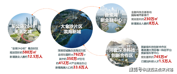 大金沙片区超300亿打造的福田首个连片规划区域,定位为深港双城融合滨海活力区,承载区域高端居住及商业需求,是未来20年最磅薄的发展力量,将新增约33万+高净值消费人群。