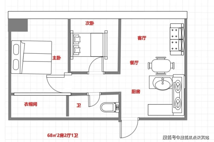 68㎡,2房2厅1卫
