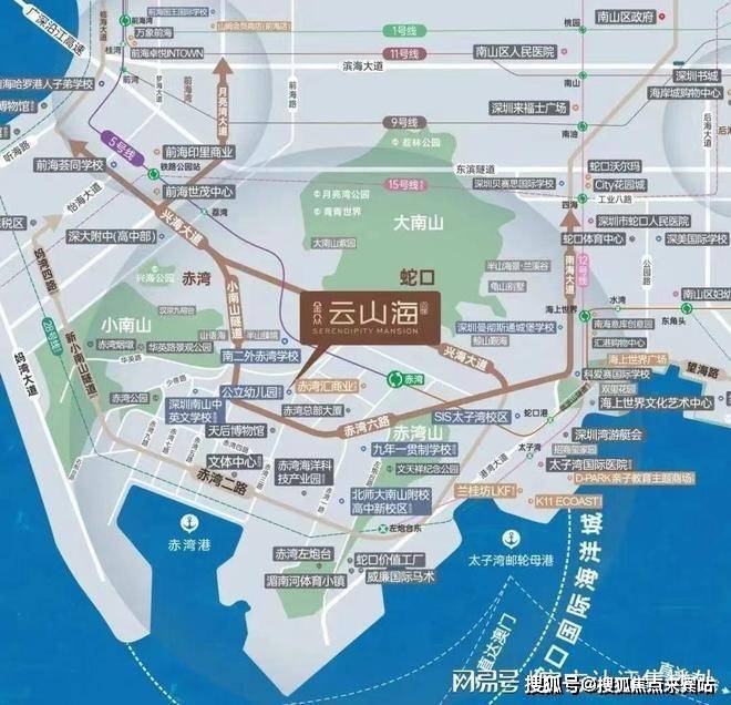 项目东临小南山隧道,西临赤湾总部大厦,北靠小南山,南朝赤湾码头,三面环山,一面临海,仿佛置身于山海之间的秘境。部分高楼更可远眺深圳湾海景资源,让人心旷神怡。