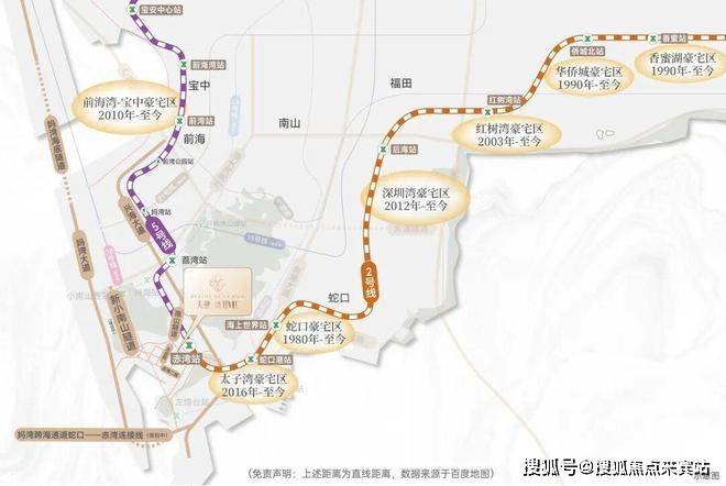 - 地铁:项目距2号线(豪宅线)与5号线(发展线)首发赤湾站约300m(直线距离),从此,坐地铁而不是站地铁,未来新小南山隧道(预计2027年竣工)、望海路升级等重大交通配套持续落地,咫尺间连通蛇口、前海;