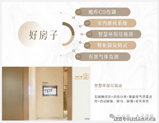 新风系统、智慧垃圾房等配置,从户内到小区,全方位净化监测+清新除菌+绿色投放,无忧呼吸。