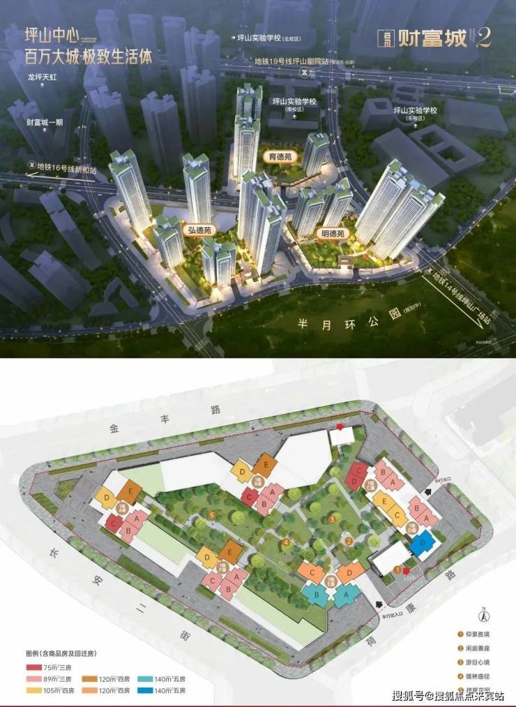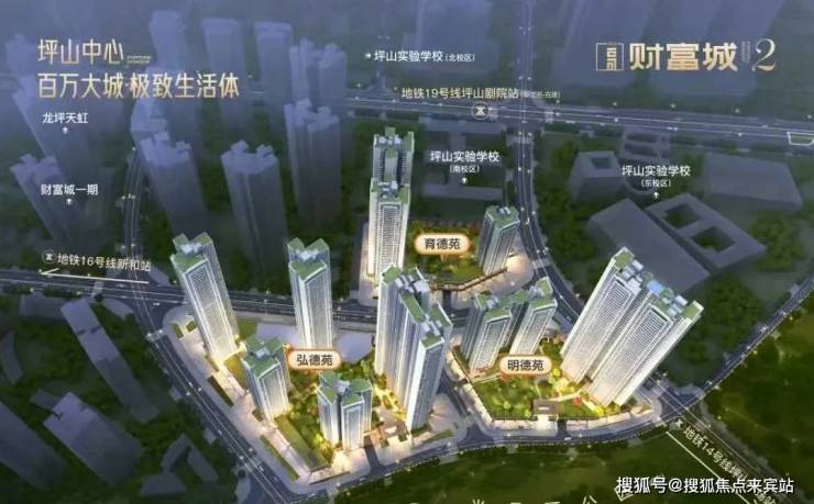 深圳财富城2期位于坪山区高铁新城金丰路与和安路交汇处西侧,地处坪山核心区域,是坪山区最顶流的居住区。该楼盘总占地面积约4.54万㎡,总建筑面积约35.8万㎡,共分为3个地块开发,分别为财富城弘德苑、财富城明德苑、财富城育德苑。