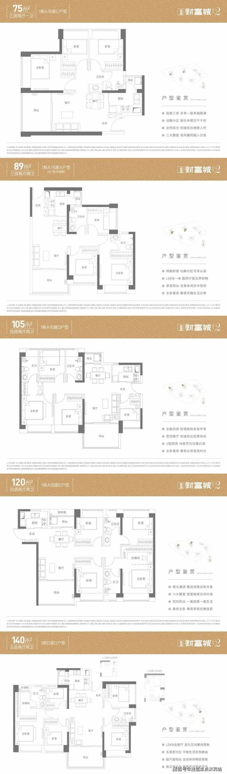 产品全阶适配,主打75-140㎡三至五房,含赠送得房率达86%-91.5%,远超市场均值。户型方正实用,户户双阳台,105㎡以上户型南北通透,部分配备270°转角飘窗,3梯4-5户配置,简装交付省心省力,75㎡小三房低门槛适配刚需,140㎡五房满足多代同堂,兼顾实用性与舒适度。