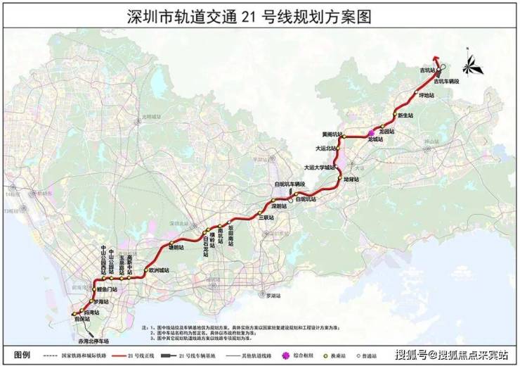 轨道交通方面,毗邻地铁3号线东延线(在建,预计2025年通车)、21号快速线(规划中)双轨交汇站新生站,其中3号线可直达罗湖、福田中心区,也可沿途换乘地铁14、16、21号线和深大城际;规划中的21号线,届时更是可快速直通南山、前海。
