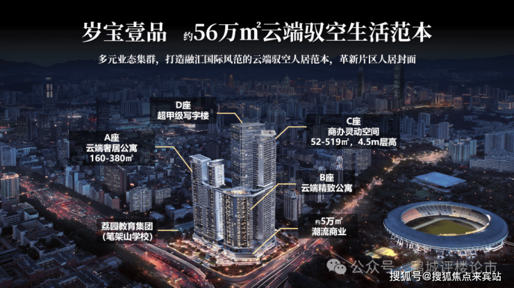 7、标杆产品——集凯达环球、AECOM等国际顶级大师团队打造建筑面积超50万㎡都市垂直生活体(含二期)。