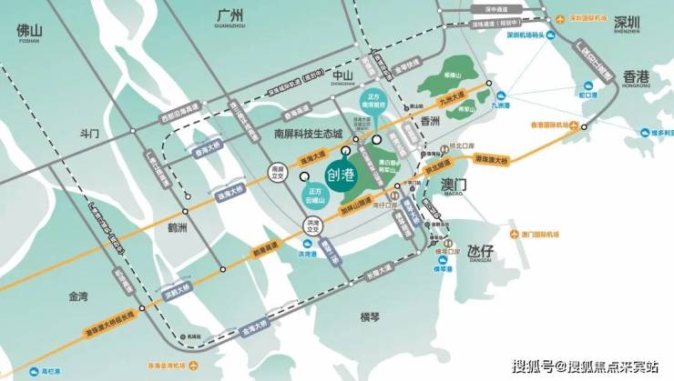 香洲创港中心,位于珠海市香洲区南屏科技生态城,由正方集团开发建设,占地面积约8.7万㎡,容积率约4.0,总建筑面积约50万㎡,投资规模约32亿。